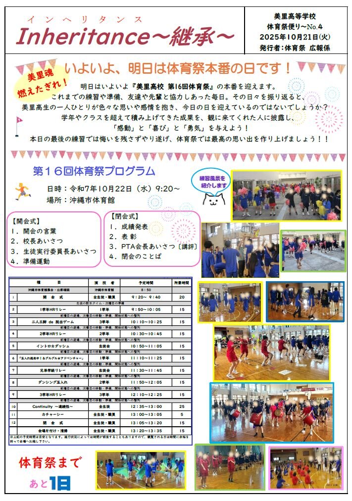 【2025.10.21更新】体育祭便り4号を発行しました。